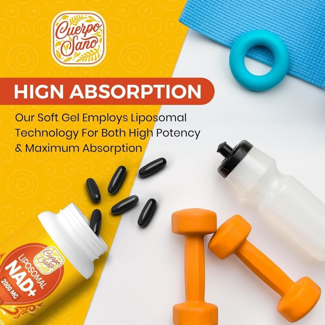 Cuerpo Sano 2000 MG NAD+ Supplement offers a powerful boost to your body's natural energy and longevity mechanisms. This high-potency, liposomal NAD+ supplement is designed for superior absorption and bioavailability, providing a more efficient alternative to Nicotinamide Riboside.